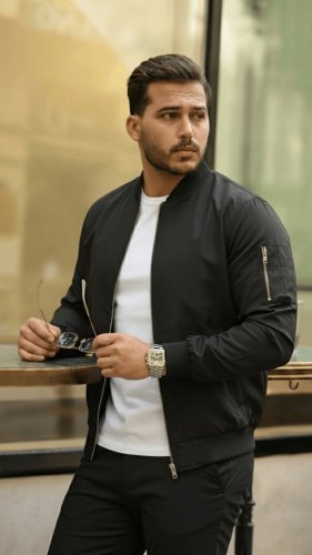 • Erkek içi Astarlı Fermuarlı Bomber Mevsimlik Ceket Siyah
