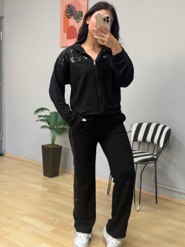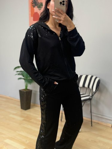 Kadın iki iplik kumaş pul ve fermuar detaylı ikili takım