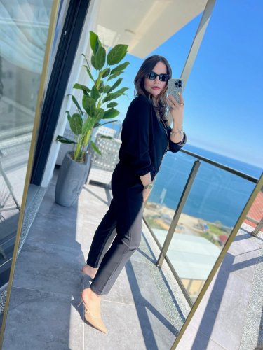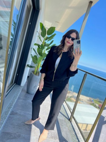 • Kadın uzun kollu önden fermuarlı modal ceket ve pantolon ikili takım
